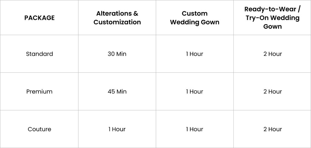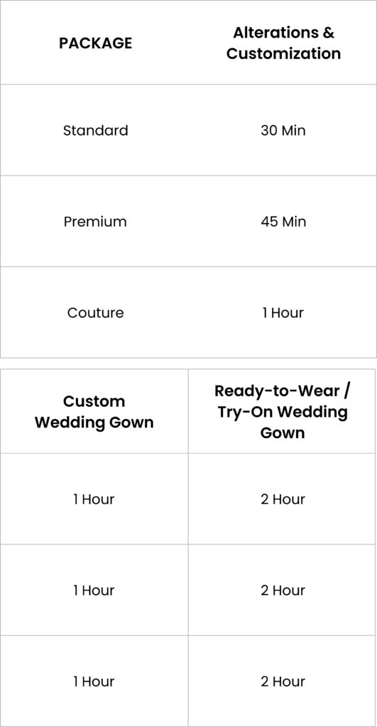 - Every appointment is private, focused, and tailored for perfect fit and elegance
